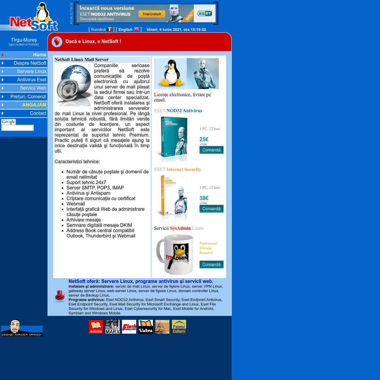 Firma NetSoft SRL are ca obiectiv principal de activitate instalarea, configurarea şi administrarea serverelor Linux, Cloud Engineering, Kubernetes și suport DevOps. De asemenea, NetSoft este distribuitor zonal al soluţiilor antivirus ESET. Pe lângă aceste activităţi, NetSoft oferă şi servicii de găzduire pagini web, înregistrare domenii, certificate SSL, Google Workspace reseller și soluții de securitate Fortinet.